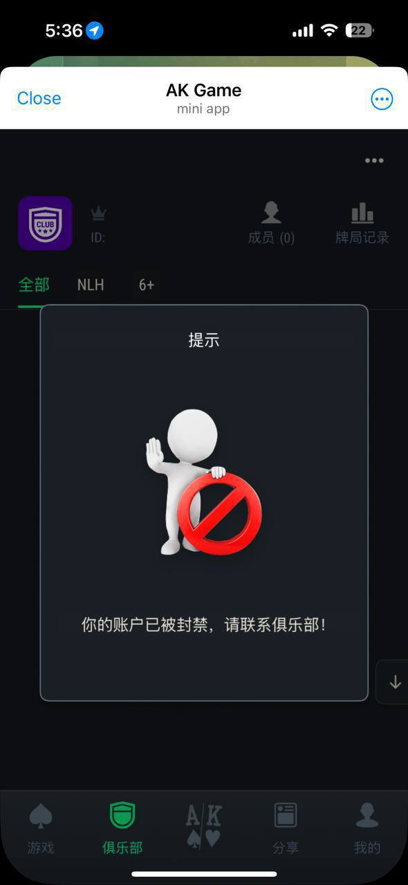 本人因看见ob德州各种宣传广告之后进入俱乐部玩德州扑克,第一次在此俱乐部玩,赢了几千u,立马遭封号。联系客服后客服以没有报备为由封号,经沟通后客服告知已经解封,但实际进入牌桌还是显示封号状态,再次找客服处理客服以技术问题为由一直拖延(估计赢了他们的几个拖,输不起)。最后逼得没有办法找AK平台官方处理,AK平台官方包庇俱乐部,并配合俱乐部封禁玩家账号,随意黑钱,后找天成担保处理(此OB德州已上压)天成客服也拒不处理,如要处理还需先交仲裁费,可笑至极。